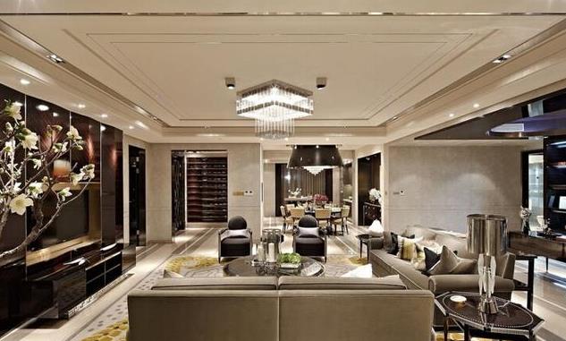 這樣的不銹鋼線條吊頂是不是讓整個天花板都生色不少?用不銹鋼來裝飾吊頂邊緣,就像是為整個家居天花板系上了一條銀亮的絲帶,時尚、美觀、大方。且與整體家裝風格相一致,搭配精美的水晶吊燈,營造的整個客廳時尚感爆棚。