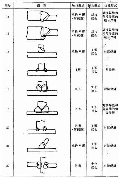 焊接中,由于焊件的厚度、結(jié)構(gòu)及使用條件的不同,其接頭型式及坡口形式也不同。焊接接頭型式有:對(duì)接接頭、T形接頭、角接接頭及搭接接頭等。