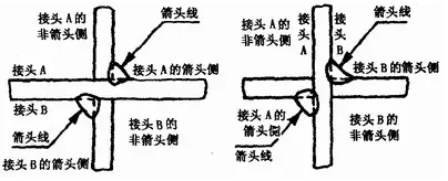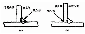 (a)焊縫在箭頭側(cè)??(b)焊縫在非箭頭側(cè)