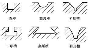 此外,根據使用或制造的要求,零件上還常有各種溝槽。溝槽實際上是由平面或曲面所組成的,常用溝槽的斷面形狀如圖5.1. 3所示。