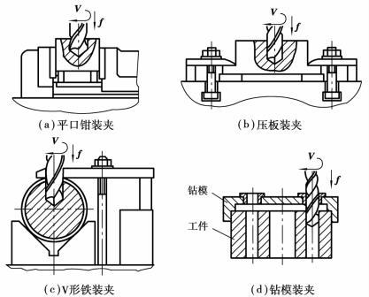 圖5.2.23 鉆床上工件的裝夾方法