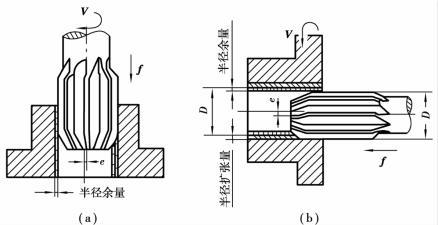 用锪鉆在已有的孔上锪出錐形或柱形的沉坑稱為锪孔;用锪刀加工孔端凸臺稱為锪凸臺。锪孔和锪凸臺多在鉆床上進行,如圖5.2.22(e)~(h)所示。它們雖不及鉆、擴、鉸用得普遍,但也是一種不可缺少的加工方法。